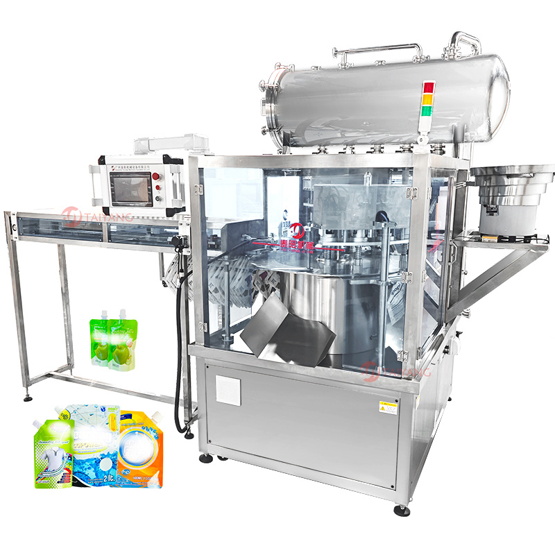 Taiyang lau buruko spout poltsa hau betetzeko eta kateatzeko poltsetarako diseinatuta dago. Itzultzeko poltsetarako diseinatuta dago. Egitorezko poltsak betetzeko eta kateatze prozesuan oso eraginkorrak dira, betetze-poltsak betetzeko eta kaxa-makinak zehaztasunez kontrolatu ahal izango ditu likido-fluxua, poltsak / spootak babesteko Gaitasunak baldintza desberdinak dituzten poltsak zehaztasunez bete daitezke, oso likidoa den likidoa izan daitekeenik, betegarriaren prozesuarekin erlazionatuta dago eta capping makinak elikadura-makinarekin kooperatzen du txanoa azkar jaisteko eta poltsaren zigilatzea eta ihesak likidoak saihesteko.