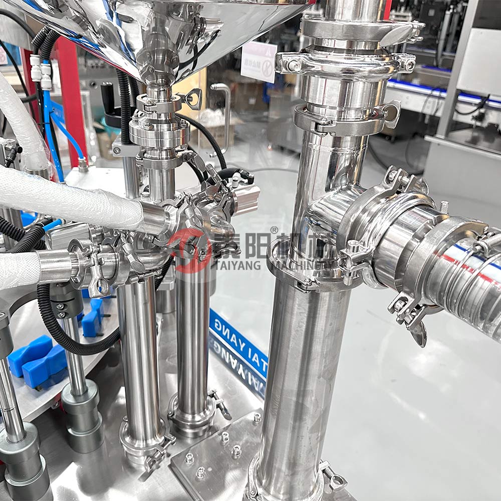 Taiyang bi buruko krema betetzeko eta capping makina hau lozioak, kremak eta bestelako produktuetarako egokia da. Adibidez: lozio, tonerrak, fundazio likidoa, kremak, esentziak, olio esentzialak, etab.
